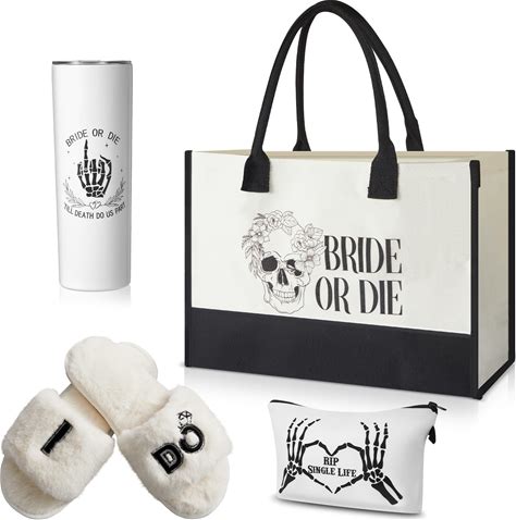 Cosblank 4 Pcs Bride Gifts For Bridal Shower - Bride Or Die Bachelorette Gift Set, 20Oz Stainless Steel Tumbler, Canvas Tote Bag, Makeup Pouch & Cozy