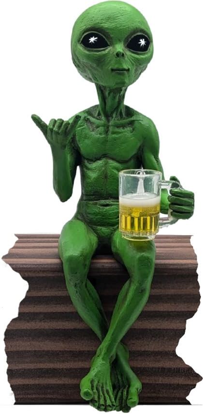 John Bernard & Company Alien Invasion 'Party Alien' Male Hang Loose Beer Drinking Ledge Lounger 10 Inch Funny Home Or Garden Statue (Green)