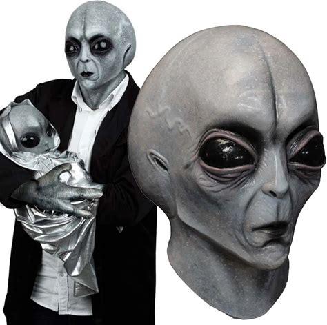 UFO Alien Mask Gloves Cosplay Costume Props Extraterrestrial Organism Monster Skull Latex Helmet