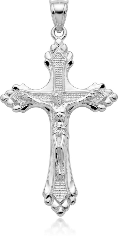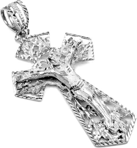 .925 Sterling Silver Diamond Cut Crucifix Cross Jesus Christ Pendant Necklace Pendant With 22" Chain