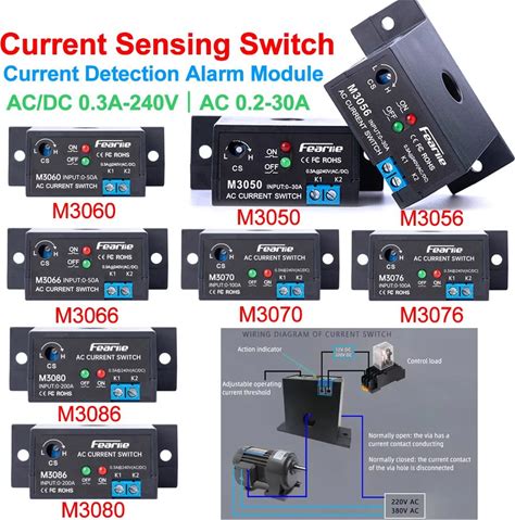 M3050 AC Sensing Switch 220V Current Detection Switch Alarm Module Transformer Adjustable AC Current