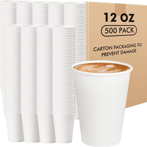 RACETOP Paper Coffee Cups 12 Oz 500 Pack, Paper Cups Disposable, Hot Coffee Cups, Ideal For Coffee, Beverages (12Oz 500 Pack White)